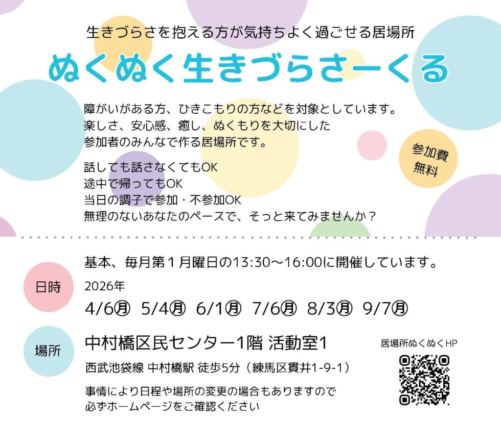 5月4日(月・祝)ぬくぬく生きづらさーくる