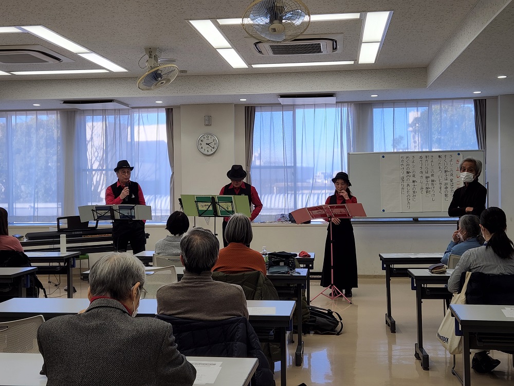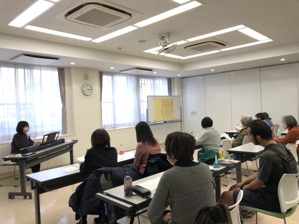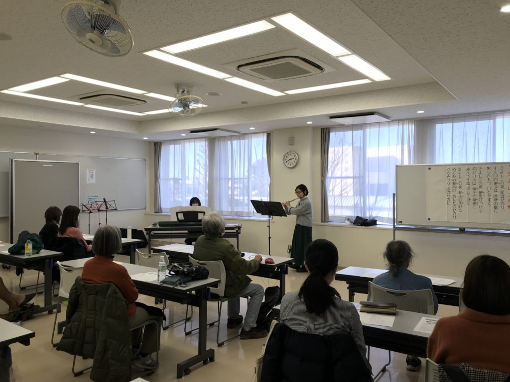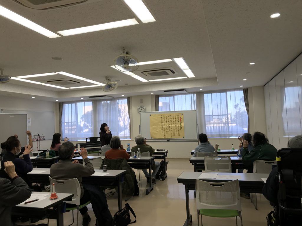今回は、いつもの中村橋福祉センターの小さなお部屋を飛び出して、お向かいにあるサンライフ練馬の会場で、「クリスマス音楽を楽しもう会」という、ちょっとイベント的な内容です。定員40名の会場は、やはり広い!と感じました。